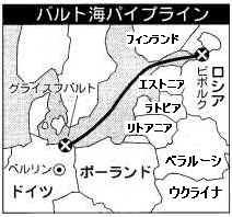 パイプラインは、露サンクトペテルブルク北方のビポルクから独北東部グライフスバルトまで、バルト海海底約1200キロを結び、年間最大550億立方メートルの天然ガスを供給する。世界最大の天然ガス生産・供給会社であるガスプロムと、独電力大手エーオン社、化学大手BASFの関連会社が出資。57億ドル(約6300億円)をかけ、今秋着工、10年の完成を目指す。
