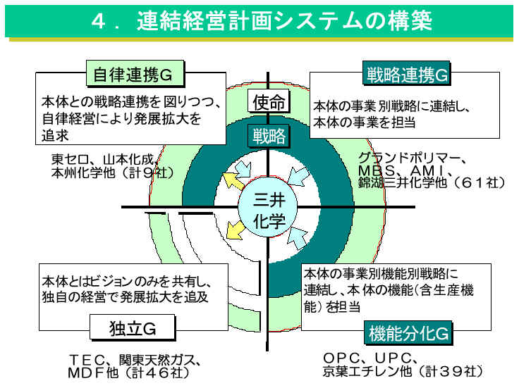 合併前の2社には、一部の樹脂を除いて重復する事業がほとんどなかった。このため、戦略事業の選択と投資先の集中が、合併後の最重要課題になっていた。