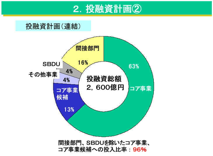 会見で佐藤社長は「当社の目指す総合化学は総花的な事業展開ではなく、世界的に強い事業を広い領域で持つこと」と定義した。経営資源を既存の各事業に振り向けていたのでは、いつまでたっても合併効果はない。中核事業を絞り込だ中期計画は、総合化学路線の軌道修正と言える。