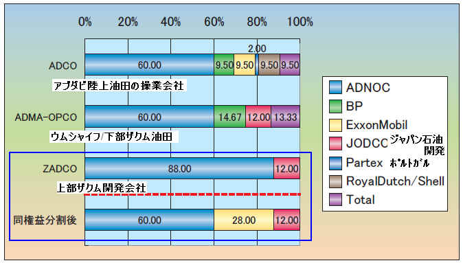 | ・下部ザクム油田 | JODCO社12% | ADNOC社60% | BP社14.67% | TOTAL社13.33% |