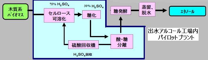 当社は以前より農作物の茎や芯、廃木材などの木質系残渣等バイオマス資源の燃料化技術に着目し、アルケノール社との独占提携により同社が所有するバイオエタノール製造特許技術の商業化実証研究を続けてきました。2002年には鹿児島県出水市の(独)新エネルギー・産業技術総合開発機構(NEDO)出水アルコール工場内に、NEDOの委託事業としてパイロットプラント(実証装置)を建設し、当社が持つプロセス技術・開発技術の工業化ノウハウを組み合わせることで本技術の商業化への技術蓄積を行なってきました。