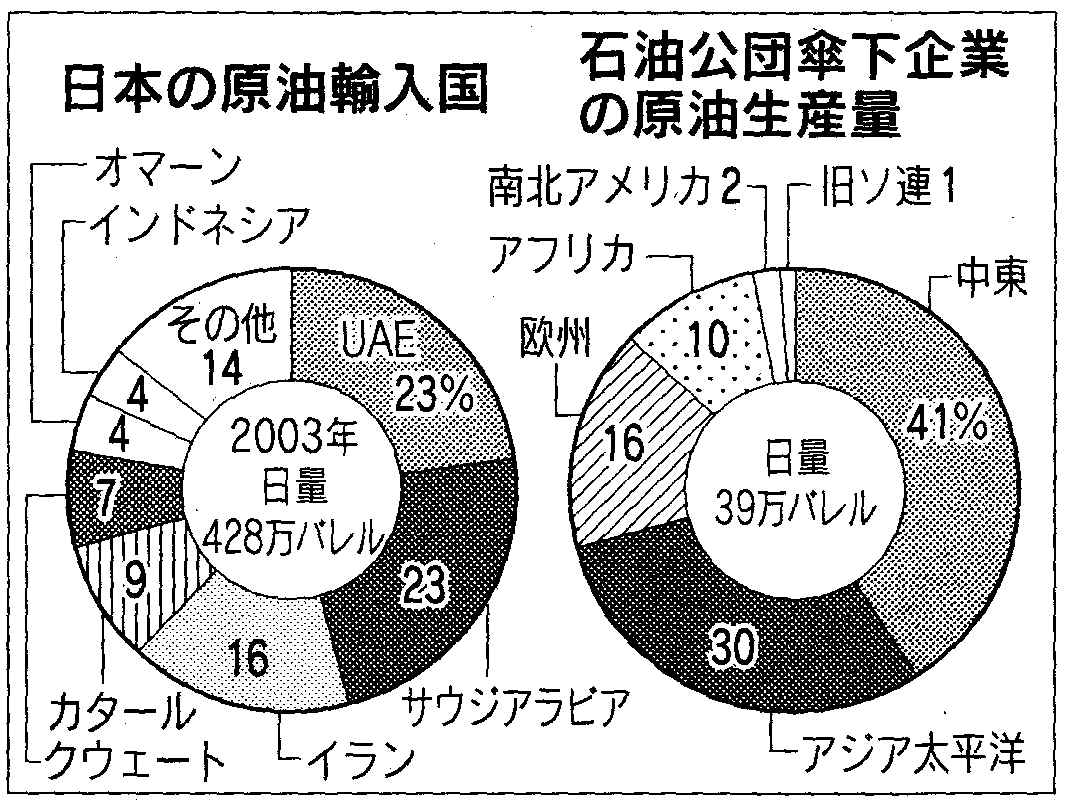 09年に日量15万バレル、13年には26万バレルの生産を計画している。04年度の日本の原油輸入量は日量417万バレルで、このうち自主開発原油は45万バレル。仮に26万バレル増えると、自主開発原油の比率は10%から17%に増える計算だ。