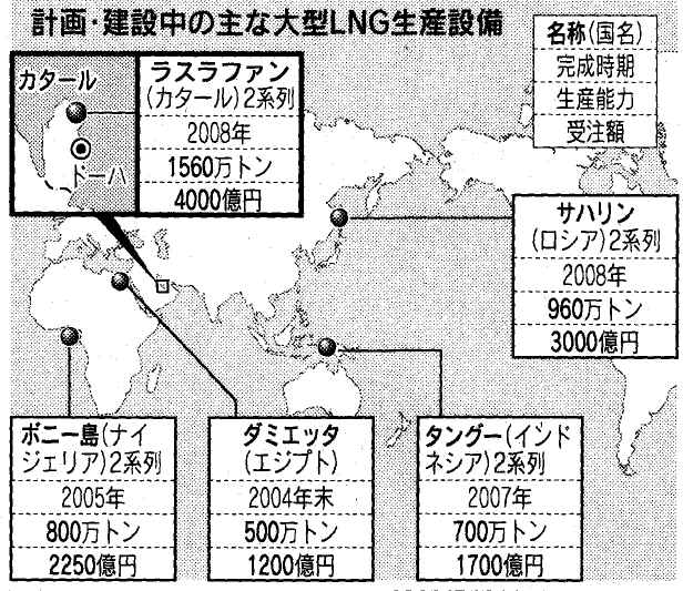 サハリン2では、日本の輸入量全体の18%に当たる年960万トンのLNG生産が見込まれており、「サハリン2がなければ、今後の調達計画はかなりきつい」(勝俣垣久・東京電力社長)との本音も漏れる。政府や企業はカタールなど、別の有望調達先の開拓も進めているが、事情は欧米も同じで、LNG獲得競争は激しさを増す見通しだ。