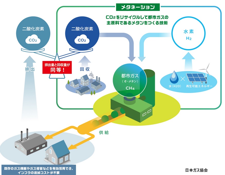 オーストラリアでは東京ガスと豪エネルギー企業のサントスベンチャーズ、大阪ガス子会社、東邦ガスの4社が合成メタンの製造を換討している。