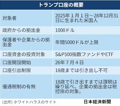 口座は、米企業を「主に」対象とする低コストのインデックスファンドで運用しなければならず、子どもが18歳になる年まで引き出しが