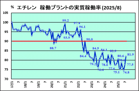 石油化学製品 生産・販売実績    2025年8月分更新     METI 石化能力は2022年12月末が最後、その後、更新なし
