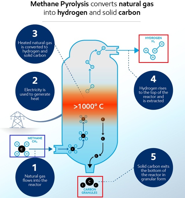 This process creates two products: low-emission hydrogen and high-purity solid carbon. The solid carbon has applications across multiple industries including steel, aluminum manufacturing, construction and advanced carbon products, like battery materials.