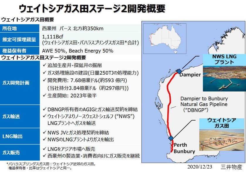 Pty Ltd を通じて50%権益を保有しオペレーターを務める西豪州Waitsiaガス田の本格的商業開発につき、事業パートナーのBeach