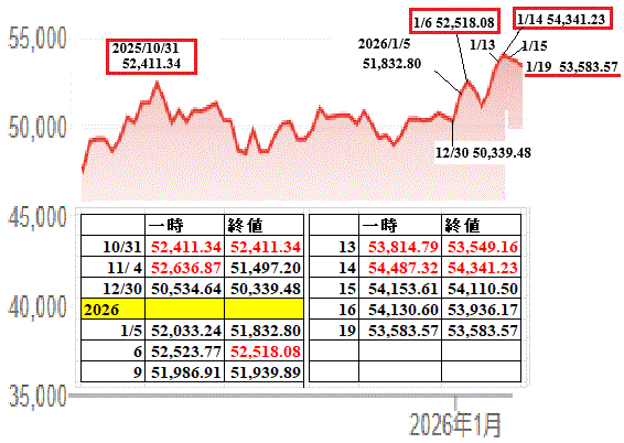 2026年 原油ナフサ価格、NYダウ、日経平均、ドル・円相場、人民元 の毎日の動き 2024年、2025年の推移はこの下にあります。