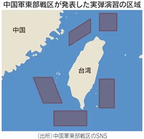 中国人民解放軍 (12/29)、台湾を取り囲んで実弾を使った大規模な演習を開始