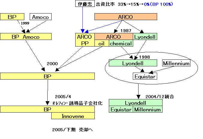 | 1999年1月 英国系石油メジャーのBP社と米国系石油会社のアモコ社との合併 → BPアモコとして発足 2000年4月 ARCOを買収して社名をBPに戻した。