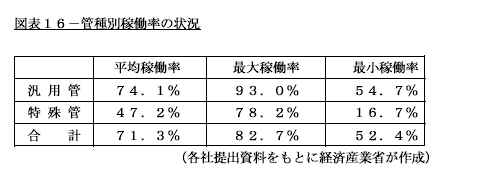 | 注) | 平成12年における各工場別に汎用管ラインと特殊管ラインに分け、平均、最大、最小稼働率をそれぞれについて計算したもの。 |