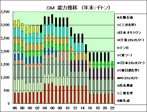 (生産能力:24万d/年)を停止して千葉SM社プラントの一基操業体制に移行します。この結果、当社SM生産能力は40万d/年から27万d/年となり、当社は、競争力を有する