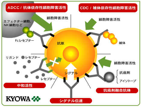 抗体医薬は免疫の働きを応用したもので、抗がん剤や関節リウマチ薬など様々な種類がある。日米で約200品目開発されており、協和発酵関連が実に2割弱を占める。